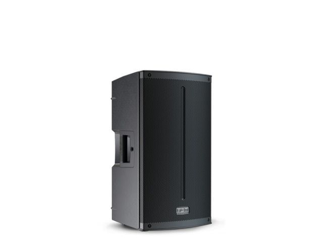 The asymmetrical shape of the FBT XLITE 110A cabinet also allows use as a powered floor stage monitor.